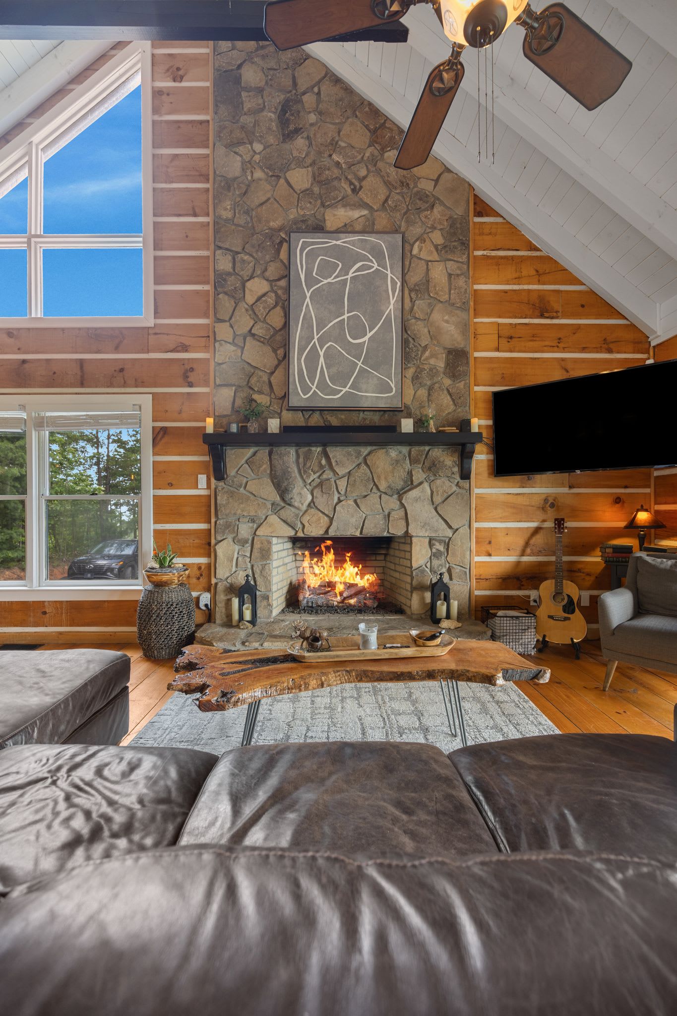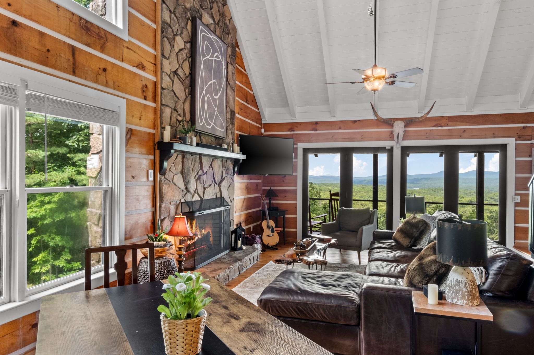 Welcome to Top of the Mountain in Beautiful Blue Ridge. Located only 6 minutes to Blue Ridge, enjoy a secluded getaway in the Blue Ridge Mountains with family or friends that will be one you won't forget. This luxurious cabin features tri-level decks with unparalleled mountain views that you have to see to believe. Relax & enjoy a glass of wine around the fire pit, take a dip in the hot tub, or watch a movie by the fire on the patio & then wake up in the morning with a cup of coffee.