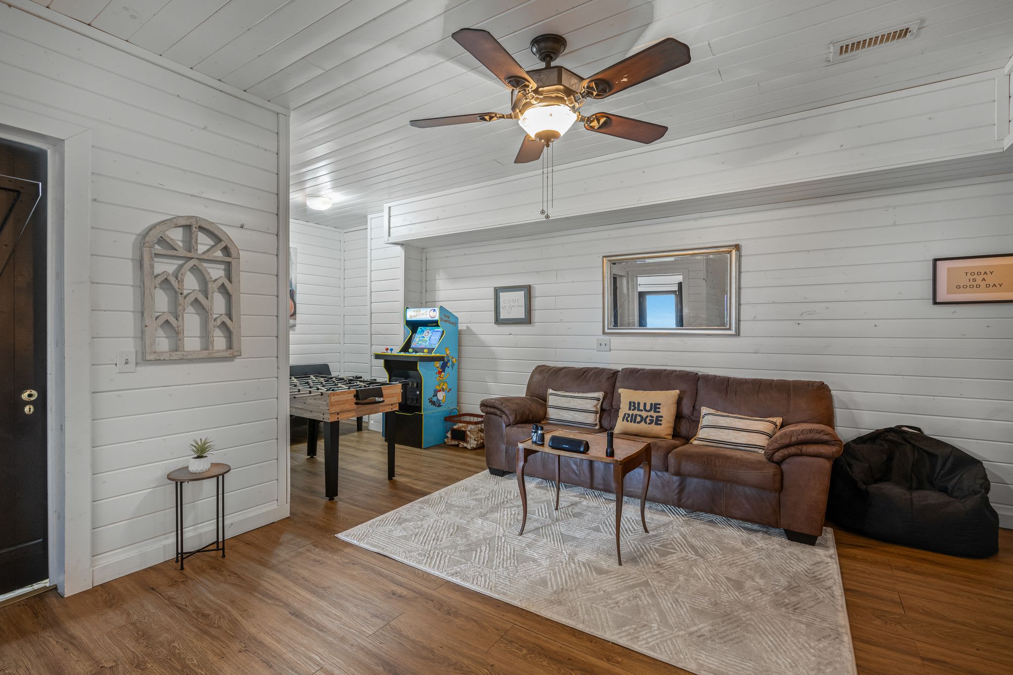 The home is located in Blue Ridge right off of Aska Road at the end of a private drive offering the best views in the neighborhood. Bedroom #1 @ main level- Queen Bed, with patio access, shared bath. Bedroom #2 @ top level - King Bed w/ attached full bath. Private secluded patio. Private bath. Bedroom #3 @ basement level- Queen Bed - shared bath. Bedroom #4 @ basement level - Queen Bed - shared bath. Bathroom #1 - Main Level - shared. Bathroom #2 - Top Level - Primary bedroom attached to bedroom #2. Bathroom #3 - Basement level - shared with bed 3 & 4 and game area. Futon located on the lower level. Air Mattress is available upon request. **Total occupancy -10 people. Sorry, we do not host locals. Any local that books this property without contacting management first for approval will have the reservation canceled without refund. Other Things To Note: - Guitar Use: There is a guitar in the home for display and personal use only. Please do not allow children to play with it, and kindly keep it stored in its case. - Free WiFi - Free Parking - Smart TV's to login to your subscription accounts. - We do not have cable but you can log into your Netflix, Hulu, and other subscription account. - Hassle Free Keyless checkin - Complimentary coffee bar with Starbucks coffee provided. - Washer/Dryer - Grilling Station - Pet Allowed - a non refundable fee and no pets over 30 lbs. - All linens and bathing essentials are provided. - We have a new couch, new dining room table, new cable railings outside - No smoking inside unit - No unauthorized guests - No parties For reservations that are made through platforms other than Airbnb, and guest is entitled a refund, guest will be charged a 3% credit card processing fee that is deducted from their refund. *Dogs Allowed on a case by case basis (max 2). $125 pet fee per pet. Please inquire w/ host before booking. Breed restrictions apply. No Cats allowed. Pet fee will be added to reservation after booking. Dogs are not allowed on furniture and must be kept in kennel at all times while left alone in unit. All properties are contactless checkin. Please be sure to arrive to checkin between 4pm & 8pm. If you do arrive later, you will still be able to checkin but may not have assistance if needed. Checkin time is always 4pm unless approved in writing by management. If you book through Airbnb and edit your checkin time to be earlier than 4pm, you will not be able to checkin until 4pm. If making a reservation with a same day checkin, checkin time is subject to change depending on cleaning schedule for that day.