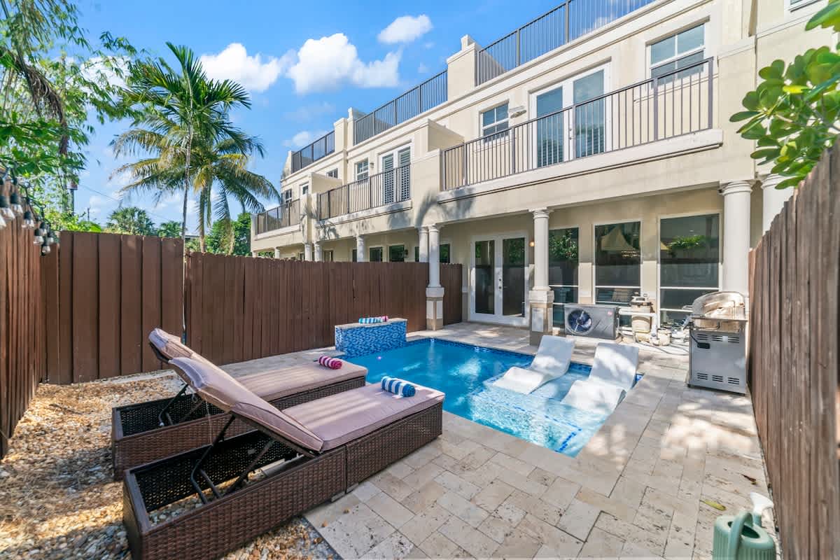This stunning 3-story luxury townhome in the heart of Fort Lauderdale is only 2 miles to the beach & offers everything you need for an unforgettable stay with a private pool, rooftop terrace, elevator, 3 beds/3 baths + 2 sleeper sofas and over 3k sq. ft. of living space - Ideal for families, couples, and corporate retreats seeking privacy, space, and upscale amenities.