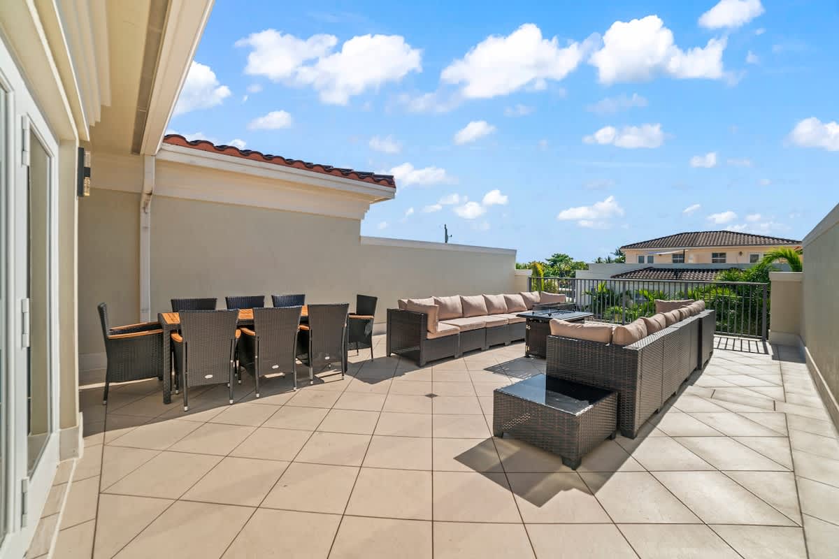 Listing provided by Chady Property Management 🛏 Bedrooms & Layout The home includes 3 private bedrooms and additional sleeping areas, offering comfort and flexibility: Second Floor: • Primary Suite – King bed, lounge seating, spa-style en suite, walk-in closet, and private balcony • Bedroom 2 – Queen bed, en suite bathroom, smart TV, private balcony Third Floor: • Bedroom 3 – Queen bed, full bath nearby, smart TV ➕ Additional Sleeping: Two sleeper sofas are available in the living spaces, perfect for families or flexible sleeping arrangements. All bedrooms feature luxury linens, smart TVs, shades, and thoughtful touches for a restful stay. ⸻ ☀️ Outdoor Living • Rooftop Terrace (3rd Floor) – Oversized sectional, 10-person dining table, fire table, and privacy walls • Private Heated Pool – Tanning ledge, pool loungers, grill, tropical landscaping • Balconies – Off both 2nd-floor bedrooms, great for morning coffee or winding down ⸻ 🛎 Full Guest Access Guests have private access to the entire home, including: • 3 floors + private elevator • Driveway parking (No more than 2 vehicles can park at the same time) (Garage not accessible for guest use). • Fully equipped kitchen w/ granite counters • Multiple lounge areas + wet bar upstairs • High-speed Wi-Fi throughout • Washer & dryer • Smart lock entry • Family-friendly layout ⸻ 🧼 House Rules • No parties or events • Quiet hours: 10PM–8AM • Absolutely NO smoking is permitted on the premises at all. If any tenant is caught smoking onsite or we get notification from neighbors that a tenant is smoking, all guests will be asked to leave and no refund will be provided. • No pets • No glass near pool • Children must be supervised at all times Violation of house rules may result in early termination of your stay. ⸻ 📍 Location Highlights • 7 minutes to Ft. Lauderdale Beach • 10 minutes to Las Olas Blvd • 5 minutes to Wilton Manors • Walkable to Whole Foods, Publix, dining, and coffee shops • 15 minutes to FLL Airport ⸻ This one-of-a-kind home is ideal for groups seeking a stylish, spacious, and centrally located stay, with room to spread out, relax, and enjoy all that Fort Lauderdale has to offer. Other things to note: •All properties are contactless checkin. Please be sure to arrive to checkin between 4pm & 8pm. If you do arrive later, you will still be able to checkin but may not have assistance if needed. Checkin time is always 4pm unless approved in writing by management. If you book through Airbnb and edit your checkin time to be earlier than 4pm, you will not be able to checkin until 4pm. •If making a reservation with a same day checkin, checkin time is subject to change depending on cleaning schedule for that day. •Sorry, we do not host locals. Any local that books this property without contacting management first for approval will have the reservation canceled without refund. •For reservations that are made through platforms other than Airbnb, and guest is entitled a refund, guest will be charged a 3% credit card processing fee that is deducted from their refund.