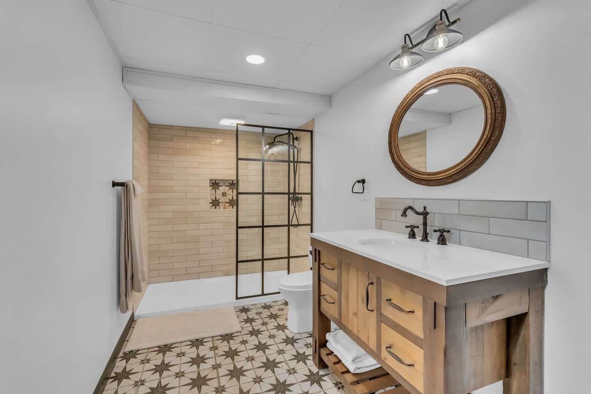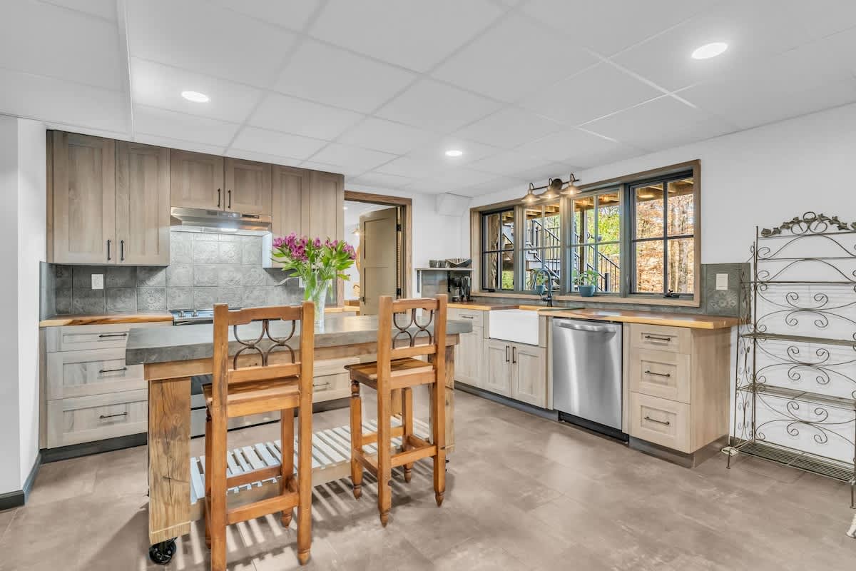 Listing Provided by Chady Property Management ✨ The Space 🛏 Bedrooms • Bedroom 1: King bed • Bedroom 2: Queen bed 🛁 Bathroom • Spacious walk-in tile shower with glass enclosure • Updated vanity & modern fixtures 🍽 Full Kitchen Beautifully designed with: • Full refrigerator • Oven + cooktop • Farmhouse sink • Dishwasher • Concrete island with seating • Dishware, cookware, utensils & coffee maker • Large window with forest views 🛋 Living & Lounge Area • Cozy seating • Mounted TV • Electric fireplace with rustic detailing • Double French doors to the outdoors 🎯 Recreation Area • Game/dining table • Additional lounge seating ⸻ 🌳 Outdoor Features • Backyard fire pit with Adirondack seating • Picnic and sitting areas • Wooded acreage with wildlife + seasonal foliage • Lake views just steps from the backyard • Wrap-around outdoor areas around the main cabin • Plenty of space to explore and relax ⸻ 🔑 Guest Access (Important Note) Guests will have access only to the downstairs level of the home as the upper level is occupied. This area is fully private and includes your own private entrance, kitchen, living areas, bedrooms, bathroom, and indoor lounge spaces. Guests also have access to: • Backyard fire pit • Outdoor seating & picnic areas • Wooded grounds surrounding the house • Lake views from the backyard (please note - the lake is separately owned and is not available for use by guest.) ⸻ 📍 Location & Nearby Attractions Located in the heart of Franklin’s countryside, right by Leipers Fork, one of Tennessee’s most charming and artistic rural communities. Approximate travel times: • Leipers Fork Village – 4 minutes • Downtown Franklin – 20 minutes • The Natchez Trace Parkway – 2 minutes • Southall Farm & Inn – 15 minutes • Arrington Vineyards – 30 minutes • Downtown Nashville – 45 minutes • Franklin Farmers Market – 20 minutes A perfect blend of seclusion + convenience. ⸻ ⭐ Ideal For • Couples • Small families • Nature lovers • Quiet retreats • Longer stays needing a full kitchen ⸻ ⭐ Other Things to Note • A starter supply of toiletries, paper products, and basic essentials is provided. Longer stays may require restocking. • The home is located in a forest setting; expect natural elements, wildlife, and seasonal leaf fall. • Exterior security cameras may be present to monitor access points for safety. • Quiet hours: 10 PM – 8 AM • No smoking indoors/dispose of trash appropriately • No parties or events • Upper level is not accessible to guests and may be occupied during your visit. •. Depending on booking platform, guests may be asked to provide additional documentation.