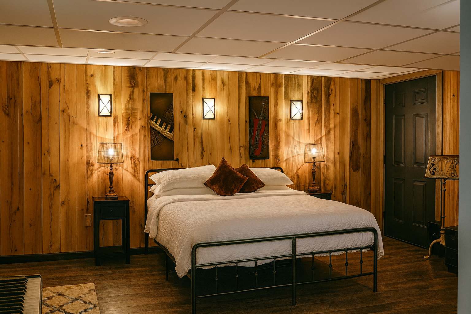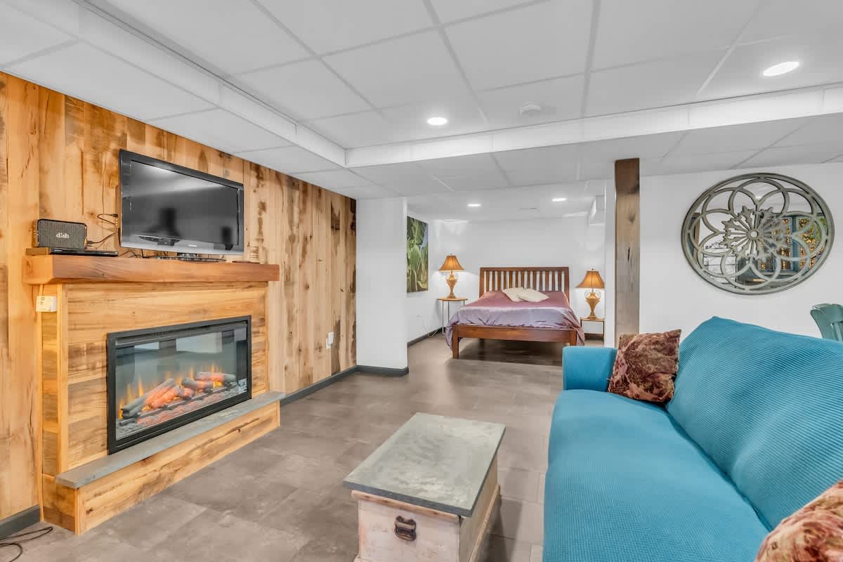 Escape to a peaceful, private lower level apartment tucked beneath a stunning log cabin surrounded by acres of mature trees, walking paths, quiet outdoor spaces, and beautiful lake views. Located in the highly desirable Leipers Fork / Franklin countryside, this serene retreat offers total privacy with its own entrance, while still being just minutes from the area’s best dining, shops, and attractions. This 2-bedroom, 1-bath lower-level suite features a full kitchen, cozy fireplace, game/lounge space, and access to the backyard fire pit overlooking the woods and lake. Perfect for guests seeking rest, nature, and a quiet escape.